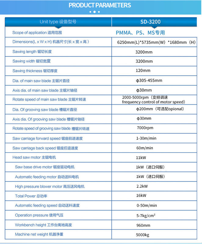 7. يعتمد القضيب الموجه لمقعد المنشار علامة تجارية مستوردة ، استقامة المنشار< 0.06 مم ، بدقة عالية وحمل ثقيل ، يتم استخدام التحكم في سيرفو باناسونيك خصيصًا لـ PMMA و MS و PS و PLEXIGLASS و ACRYLIC و PLASTIC.
